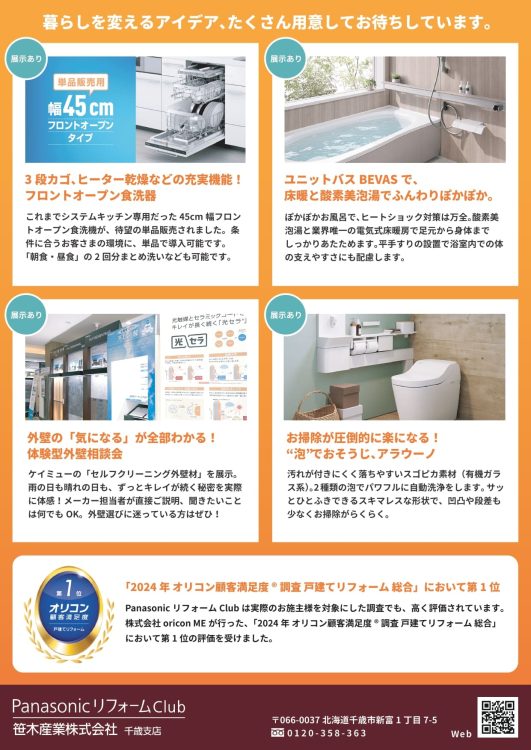 10月25日(土)・26日(日)の2日間、ちとせモール1Fセンター広場にて「リフォーム展示相談会」を開催いたします。