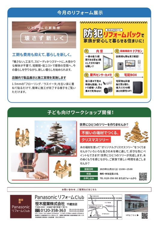 木材パーツを選んで作る「クリスマスツリーづくりワークショップ」も開催いたします。