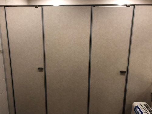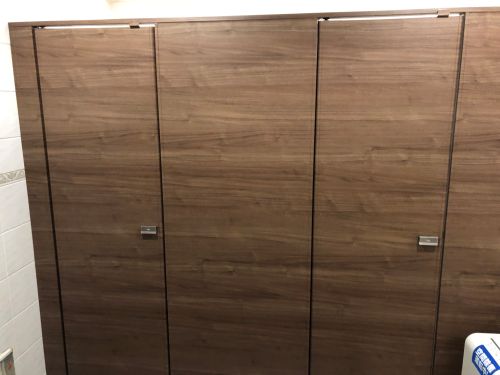 既存のブースをそのまま活用し、金物類を外して美装 → カッティングシート貼付