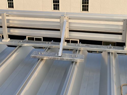 こちらの写真は、実際に折版屋根に雪止め金物を取り付けた事例です。