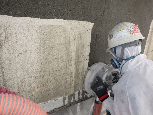 写真は、外壁の下地調整材にアスベストが含まれていたため、