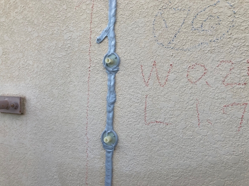 その後、ひび割れに沿って 樹脂を注入するための座金(パック) を一定の間隔で取り付けます。