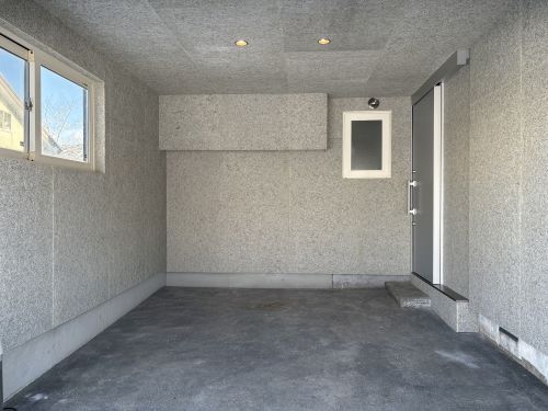 まず、ガレージ内部はシャッターを開けても視線が気にならないよな仕上げ材を選定。