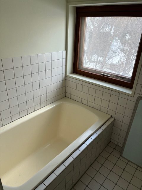 タイルを張り替えただけでも、浴室全体がぐっと明るくなり、